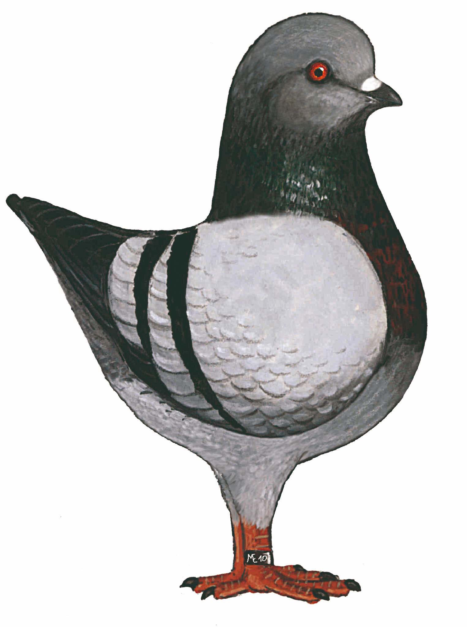 polni sijaj nebeško modre barve. Po vratu je od temno do svetlo zeleni sijaj. Na krilu sta dve dobro omejeni podvezice, ki rahlo zavijata v obliki črke V po celem krilnem pokrivalu. Progi sta črne barve, približno 2,5 cm od dna krilnega pokrovca, s tem da se na kraju kril skoraj dotikata. Črna proga je tudi na repu. Na trtici je zaželena modra ali bela barva, a je dovoljena tudi siva. |