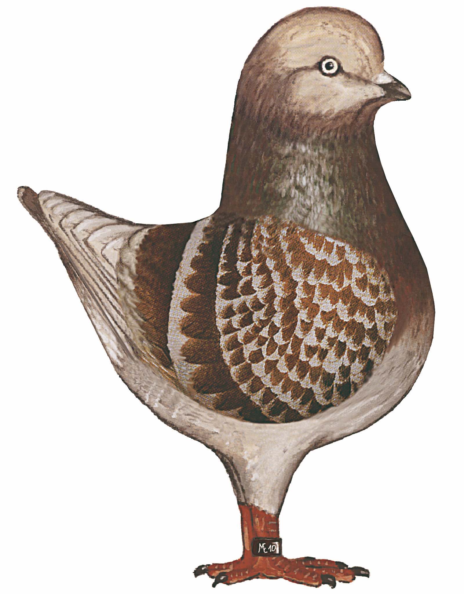 krilna plošča je temno rjave barve, ki mora biti razporejena čim bolj enakomerno. Osnovna barva bledo rjavo kovanega kinga je enaka kot pri bledo rjavem. Tudi ti imajo čisto srebrno sivo barvo na krilih, na repu je čokoladno rjav rob, letalna peresa so pepelasta, telesna barva je nekoliko temnejša, vrat ima zelenkast sijaj. Na krilnem ščitu so zaželena enakomerno razporejena temnorjava nakovalca. Bledo rjavo (pepelasto) kovane kinge lahko izboljšamo s parjenjem bledo rjavih. |